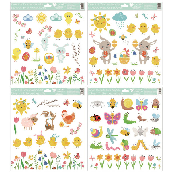 Okenní fólie mix se sluníčkem a kuřátky, 30x33,5 cm