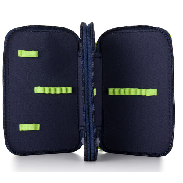 Školní penál dvoupatrový bez náplně. Penál obsahuje 25 gumových poutek pro uložení všech psacích potřeba a drobností potřebných k výuce.