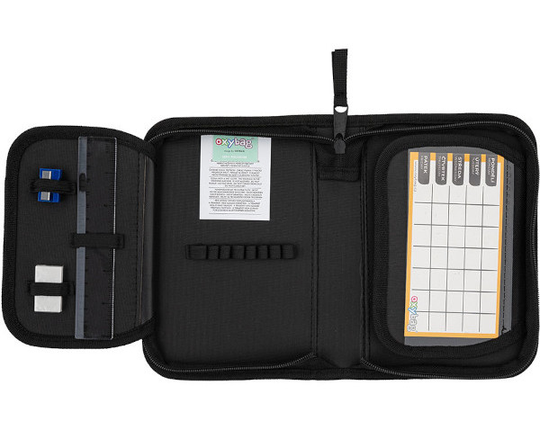 Na vnitřních chlopních jsou průhledné fólie pro rozvrh hodin.