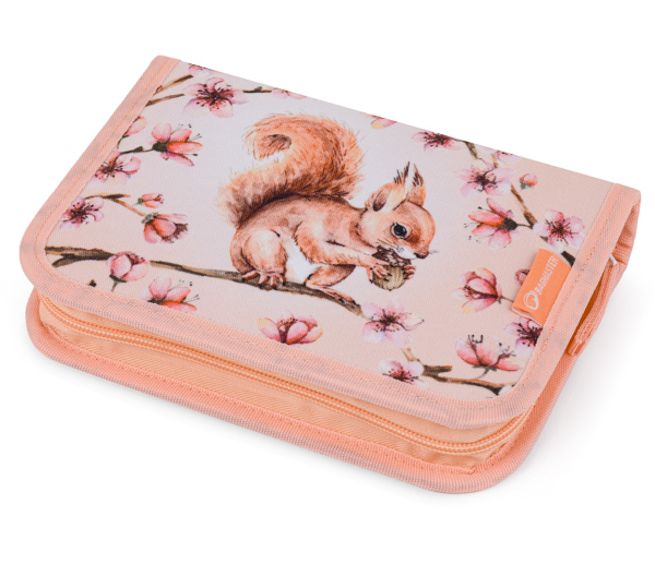 Školní penál. Díky dvěma chlopním nabízí dostatek prostoru i přehledné uspořádání všech školních pomůcek.