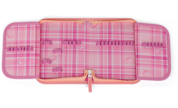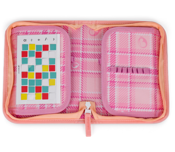 Díky dvěma chlopním a praktickým úchytům si děti snadno uspořádají všechny pomůcky. Všechno má své místo a nic se neztrácí.