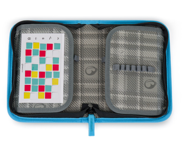 Díky dvěma chlopním a praktickým úchytům si děti snadno uspořádají všechny pomůcky. Všechno má své místo a nic se neztrácí.