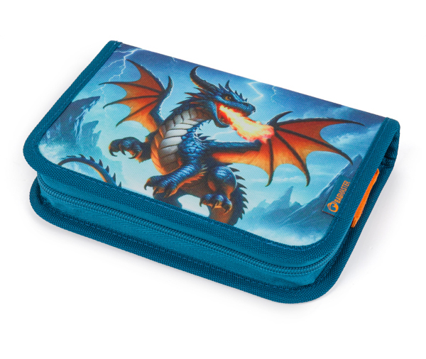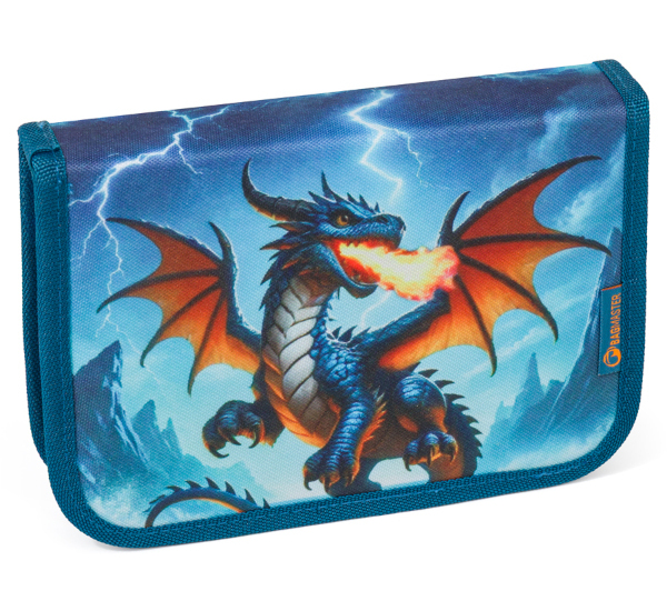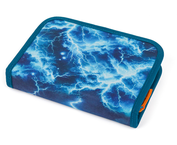 Školní penál. Díky dvěma chlopním nabízí dostatek prostoru i přehledné uspořádání všech školních pomůcek.