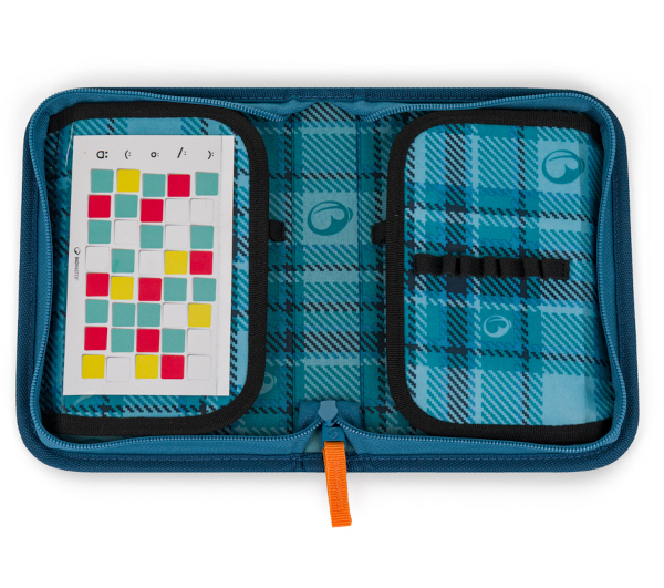 Díky dvěma chlopním a praktickým úchytům si děti snadno uspořádají všechny pomůcky. Všechno má své místo a nic se neztrácí.