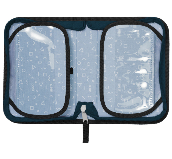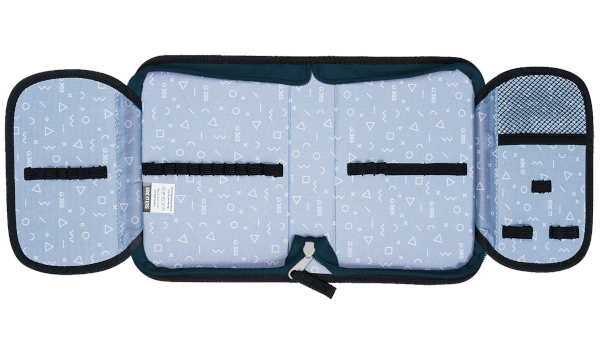 Chlopně mají na vnější straně průhlednou kapsičku na rozvrh či jiné malé dokumenty, na vnitřní straně je pak nová síťovaná kapsička pro uložení drobností.