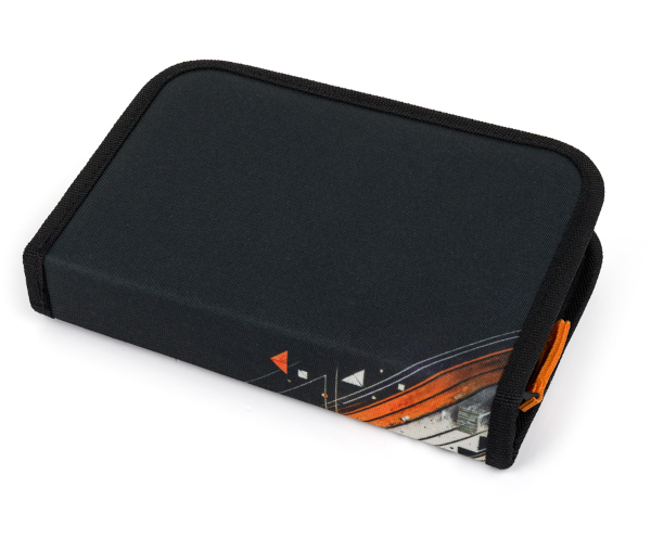 Školní penál. Díky dvěma chlopním nabízí dostatek prostoru i přehledné uspořádání všech školních pomůcek.
