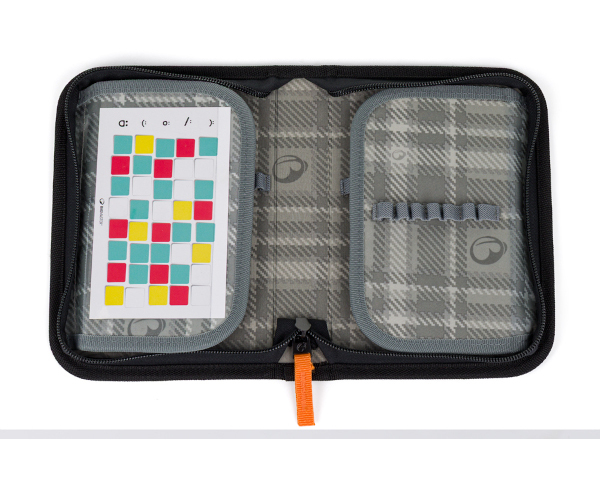 Díky dvěma chlopním a praktickým úchytům si děti snadno uspořádají všechny pomůcky. Všechno má své místo a nic se neztrácí.
