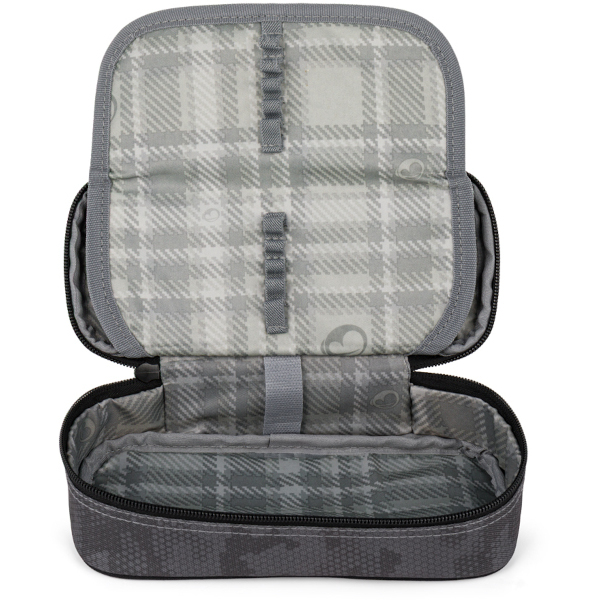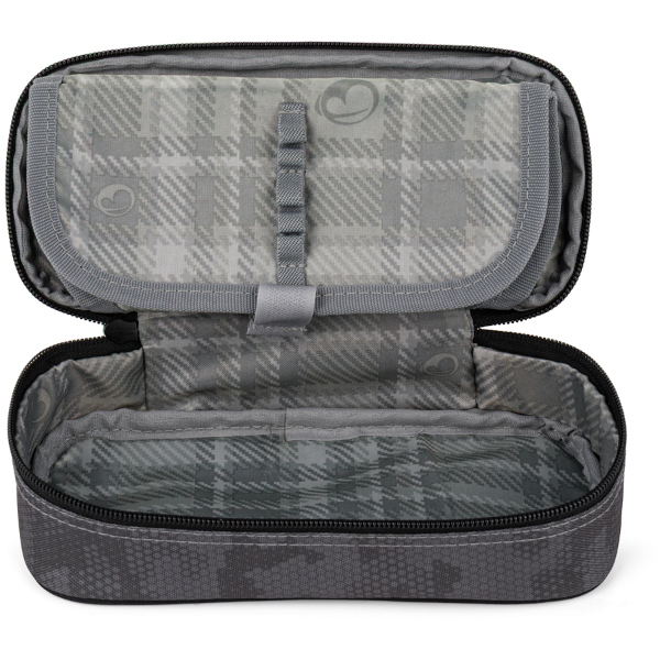 Zároveň zde bude mít každá pomůcka své místo – psací potřeby patří do 20 gumových úchytů, kružítka, gumy, pravítko a zvýrazňovače mají místo pod přepážkou s úchytky a ze spodu víka jsou přihrádka a kapsičky na doklady, karty nebo fleshky.