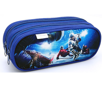 Praktická etue s motivem ledního hokeje v šedé barvě.