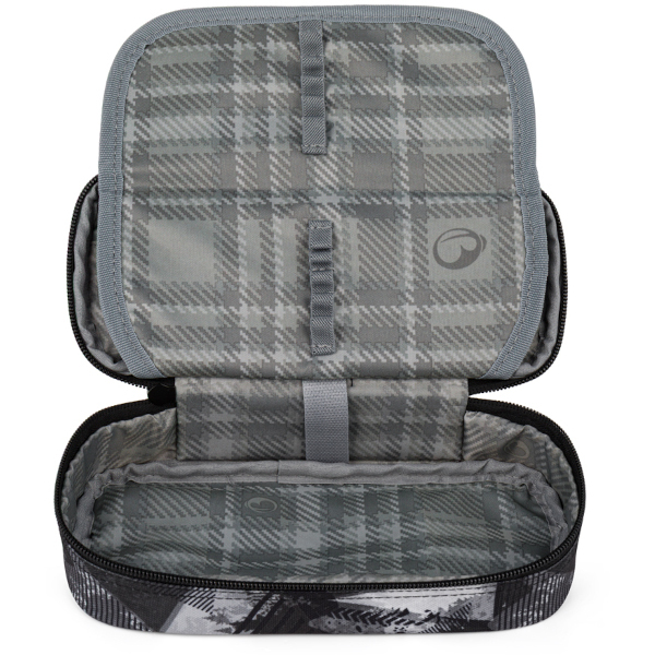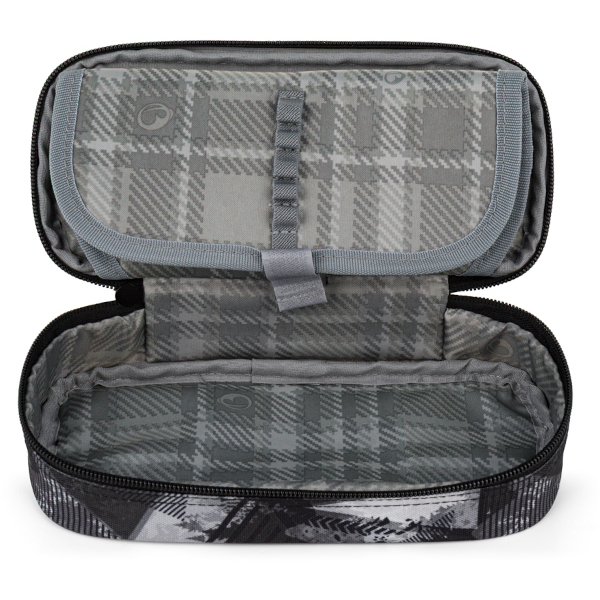 Zároveň zde bude mít každá pomůcka své místo – psací potřeby patří do 20 gumových úchytů, kružítka, gumy, pravítko a zvýrazňovače mají místo pod přepážkou s úchytky a ze spodu víka jsou přihrádka a kapsičky na doklady, karty nebo fleshky.