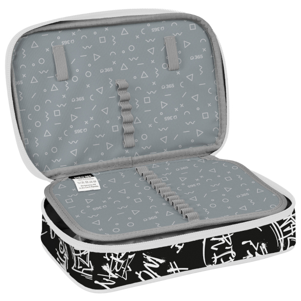 Vnitřní prostor je rozdělen do dvou pater a vybaven množstvím gumiček v různých velikostech, díky nimž má každá pomůcka své místo.