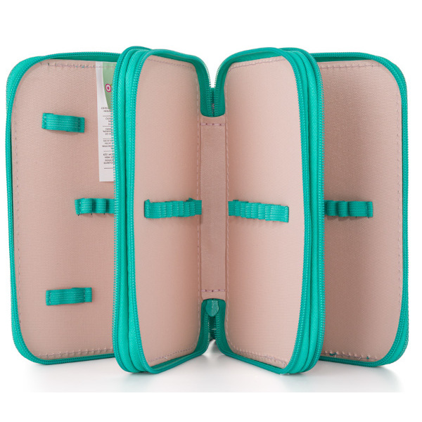 Penál obsahuje 40 gumových poutek pro uložení všech psacích potřeb a drobností potřebných k výuce.