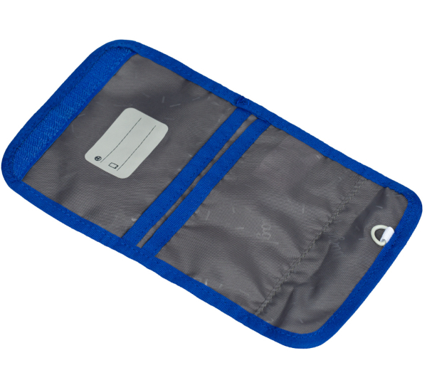 Praktická peněženka se jmenovkou a možností zavěšení na krk.