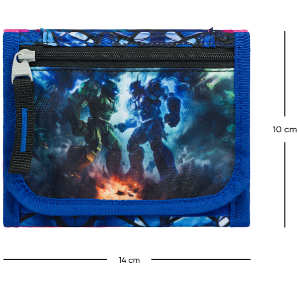• Praktická peněženka s motivem robotů a uzavíráním na suchý zip bezpečně uschová drobné, čip na oběd i další drobnosti.
