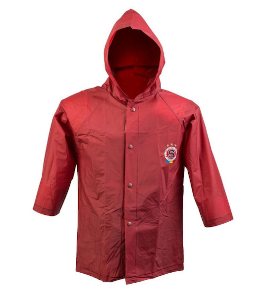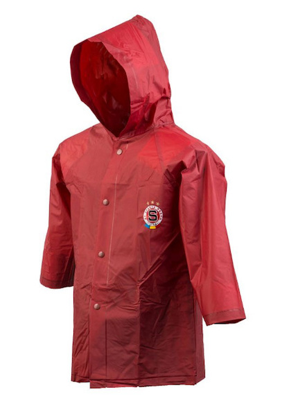 Dětská pláštěnka rudá s logem Sparty.