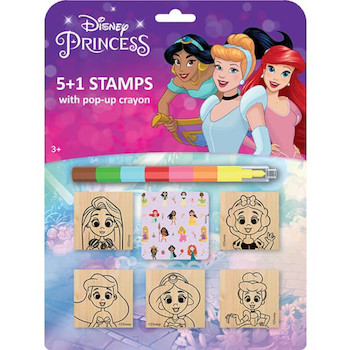 Set obsahuje 5 snadno uchopitelných dřevěných razítek, barevnou podušku s oblíbeným motivem a sedmibarevnou skládací voskovku pro vybarvování.