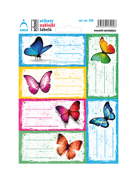 samolepící jmenovky na sešity a knihy motýlci