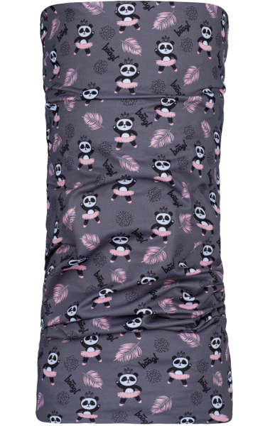 Holčičí bandana Panda v šedivé barvě s potiskem roztomilých zvířátek.