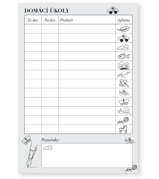 Školní deníček – úkolníček ve formátu A6 s rozvrhem hodin.