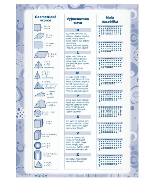 Najdete zde i malou násobilku, vyjmenované slova, matematické vzorečky.