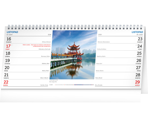 ve 14-denním stolním kalendáři na vás čekají úchvatné záběry z měst celého světa, dále české kalendárium, svátky a památné dny i měsíční fáze • to vše v přehledném dvoutýdenním rozvržení • rozměr: 33 x 14,5 cm • PGS-35706
