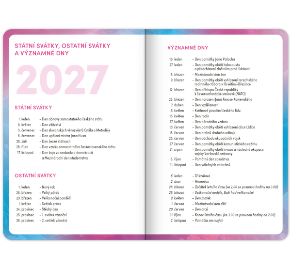 Kalendárium začíná v září 2026 a končí v prosinci 2027.