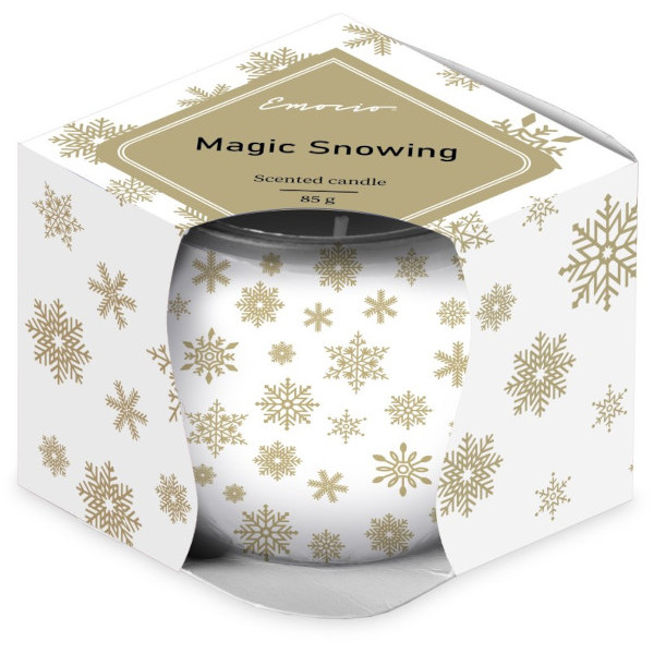 Svíčka sklo 70x62mm vonná Magic Snowing bílo-zlatá
