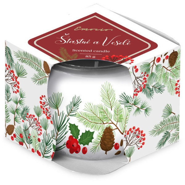 Svíčka sklo 70x62mm vonná Šťastné a veselé
