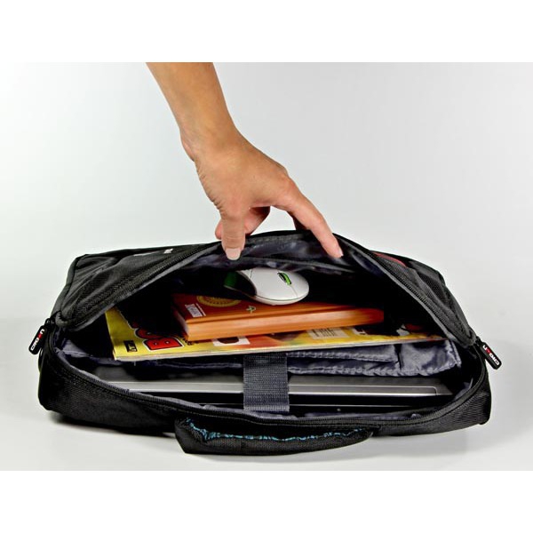 oddělená polstrovaná část pro notebook, prostor pro dokumenty, vnitřní kapsy na příslušenství, menší přední kapsa na zip, zadní kapsa na suchý zip, polstrovaná rukojeť pro příjemné uchopení, nastavitelný, odnímatelný popruh s ramenní vycpávkou, materiál nylon, vnější rozměry (vxšxh) 31 x 41 x 7 cm,vnitřní rozměry (vxšxh) 29,5 x 38 x 6 cm