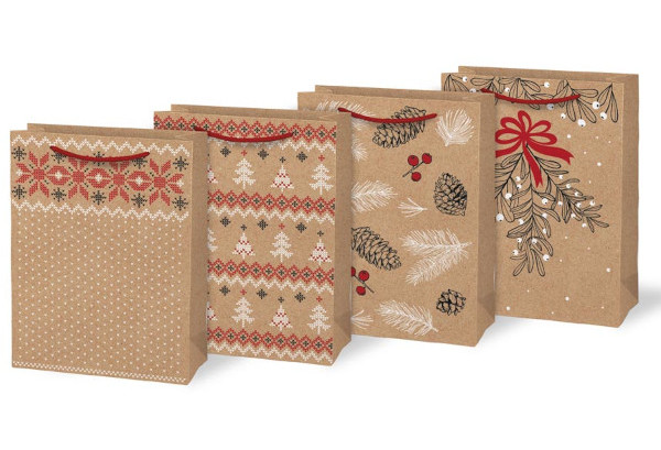 Vánoční dárková papírová taška, je ideální na předání dárků, které je těžké zabalit do dárkového balícího papíru.