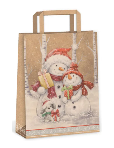 Taška papírová kraft s uchem Sněhuláčci 22x29x11cm