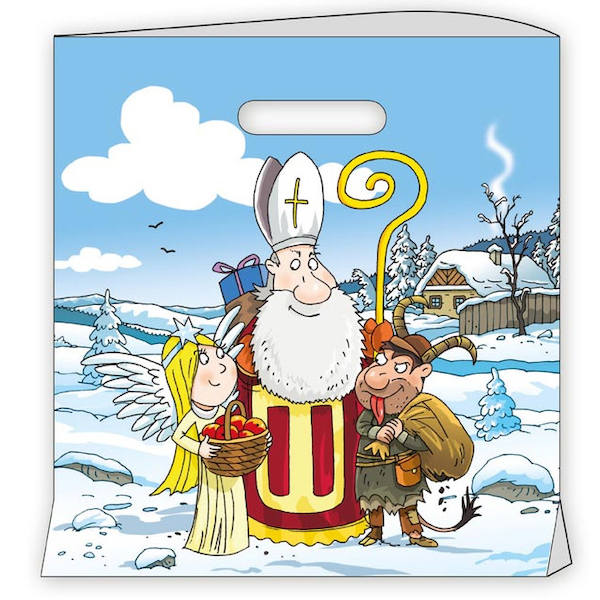 Igelitová taška s průhmatem v Mikulášském motivu.