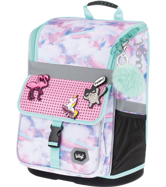 Aktovka disponuje novým vyklápěcím systémem otevírání na zip, díky kterému se školák snadněji dostane ke svým pomůckám přímo z lavice a umožňuje lepší přehled o obsahu školní tašky.