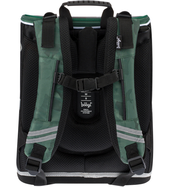 Školní ergonomická aktovka s vyztuženým tělem, vnitřním organizérem a třemi oddělenými kapsami.