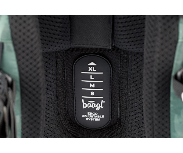 Posuvný zádový systém BAAGL ADJUSTABLE SYSTEM umožňuje nastavení optimální polohy popruhů vzhledem k výšce dítěte.