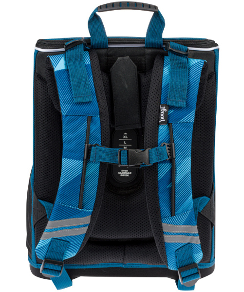 Školní ergonomická aktovka s vyztuženým tělem, vnitřním organizérem a třemi oddělenými kapsami.