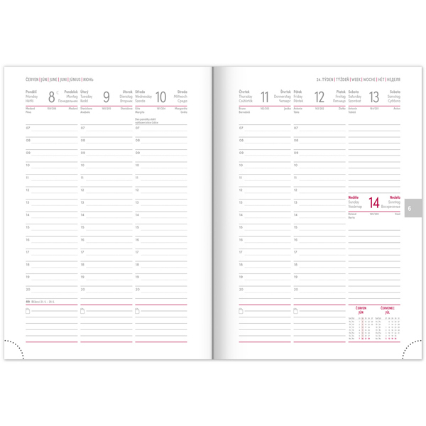 Týdenní diář Balacron bordó 15×21cm