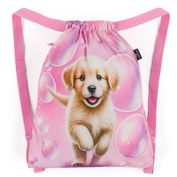 Látkový sáček si školák může přehodit k batohu přes jedno rameno nebo jej nosit na obou ramenou.