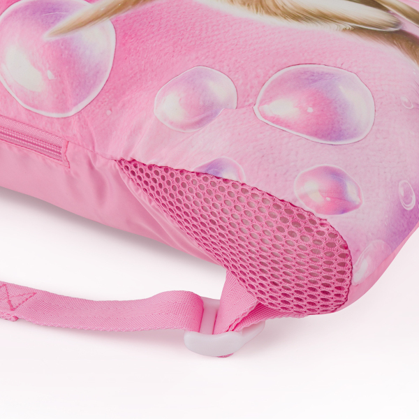Ve spodní části sáčku je síťované odvětrání. To se hodí hlavně když školačka do vaku hodí zpocený úbor z těláku nebo baletu.