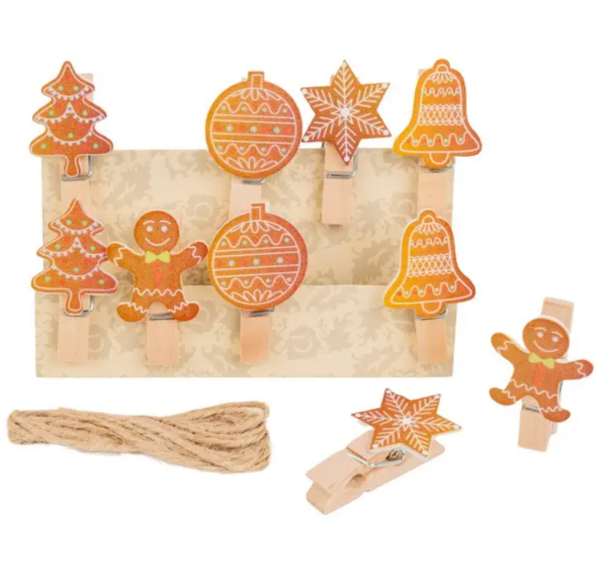 Vyřezávané z překližky, nalepené na kolíčku, díky kterému můžete ozdobu kamkoliv připnout.