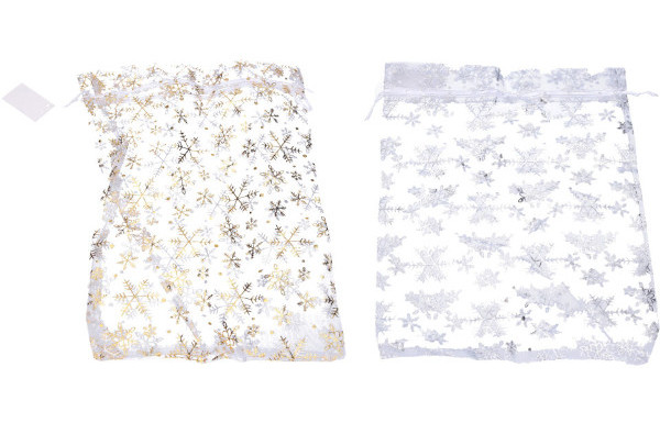 Sáček ORGANZA Vločky Vánoce. 2 barevné provedení: zlatý, stříbrný