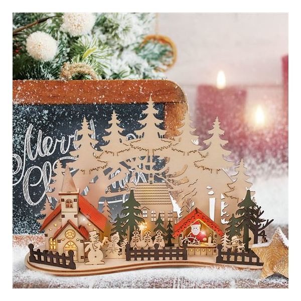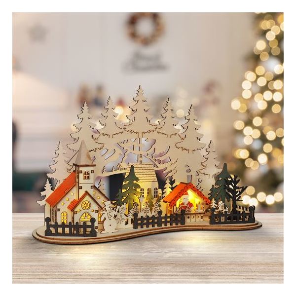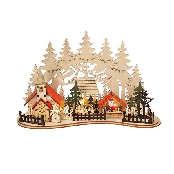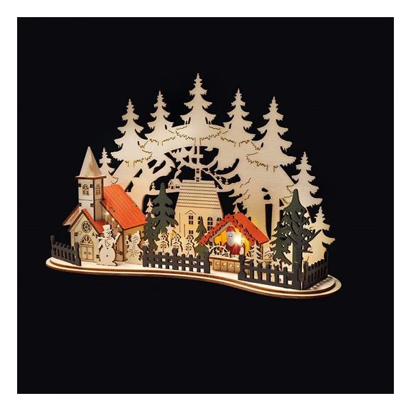Vánoční světlo LED Městečko s kostelem 30x19cm
