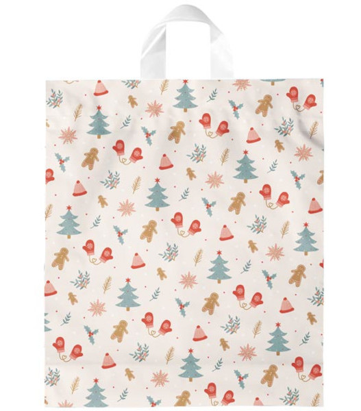 Celoplošně potištěná, igelitová taška s vánočním motivem a navařeným uchem.