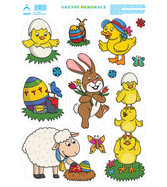 Velikonoční okenní folie  Kuřátko s kraslici 33x24cm