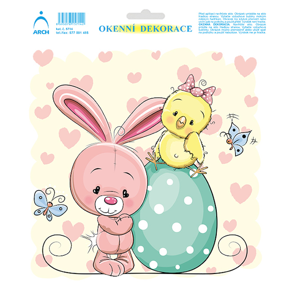 Velikonoční okenní folie  Zajíček a kuřátko 20x23cm