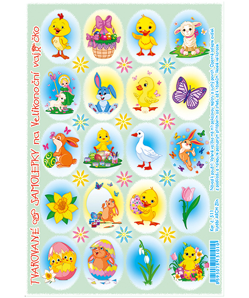 Plocha oválku je prolisovaná do tvaru vajíčka, obrázky jsou vypouklé.
