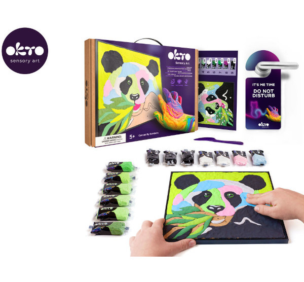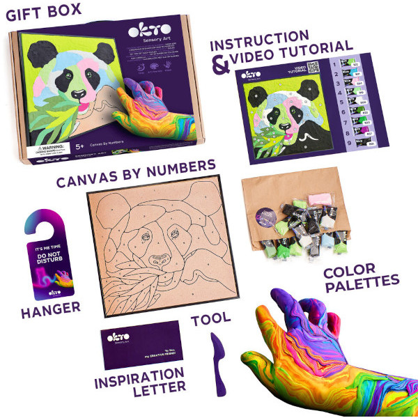 Obsah - balení. Přírodní plátno, návod, dřevěný tvarovací nástroj, 40ks modelovací hmoty.