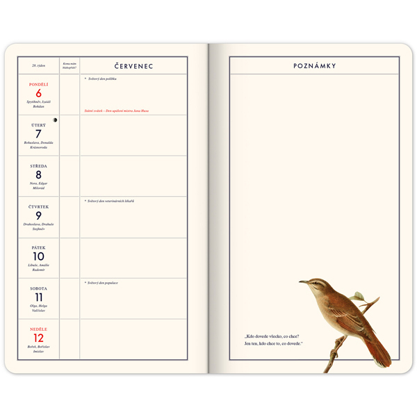 Obsahuje poutavé retro texty a obrázky z dobových periodik, ilustrace bylin z herbářů a pochopitelně české kalendárium se jmény i méně tradičními svátky, ale i s vyznačením období sběru léčivých bylin.Šířka: 13 cm